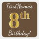Pegatina Cuadrada Brown, Faux Gold 8Cumpleaños + Nombre Personalizad