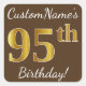 Pegatina Cuadrada Brown, Faux Gold 95th Birthday + Custom Name