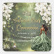 Personalize these enchanting Princess and the Frog Quinceanera / Sweet 16 birthday square sticker labels easily and quickly. Simply click the Edit Using Design Tools button to further edit the text, change font styles and font colors. Featuring a brown girl dressed in a sage green dress, a frog prince, beautiful trailing white floral and an enchanted forest and pond background. The princess, crown, little butterflies and frog are movable, resizable, multipliable and removable. Customize it to suit your occasion. For a seamless and coordinated look, explore our range of matching items available in-store. (c) Somerset Fine Paperie.