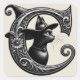 Pegatina Cuadrada Bruja Gato Negro Letra C Personalizada Inicial