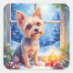Pegatina Cuadrada Brussels Griffon Frosted Window Christmas Art