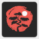 Pegatina Cuadrada Budista maestro Zen japonés árbol Bonsai