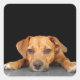 Muy lindo perro de mezcla de terrores de color rojizo y marrón con las orejas aterciopeladas de los disquetes y los ojos marrones conmovedores descansando su cabeza en el suelo. Este es un perro muy bueno.