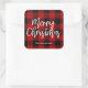 Pegatina Cuadrada Búfalo Rojo en Navidad |Nombre personal