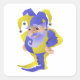Pegatina Cuadrada Bufón renacentista púrpura y amarillo con barba
