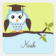 Pegatina Cuadrada Búho azul lindo