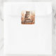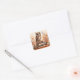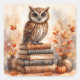 Pegatina Cuadrada Búho en Bookstack con hojas de otoño