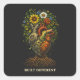 A hybrid heart of steel and flesh blooms into flowers and roots, symbolizing resilience, growth, and the harmony between nature and machine.