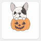 Pegatina Cuadrada Bulldog En Calabaza Perros Cute Feliz Halloween