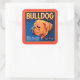 Pegatina Cuadrada Bulldog sobre un fondo azul