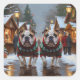 Pegatina Cuadrada Bulldogs Christmas Snow Holiday