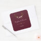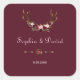 Pegatina Cuadrada Burgundy Marsala Floral Antlers Boda