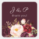 Pegatina Cuadrada Burgundy Marsala y Rubor Floral Monograma