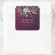 Pegatina Cuadrada Burgundy Romance Watercolor Floral Gracias