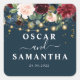 Pegatina Cuadrada Burgundy Rústico Azul Marino & Flores Rojas & Luce