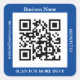 Personalice este pegatina con su código QR en cualquier color, pero asegúrese de que es lo suficientemente oscuro para escanear. Nombre comercial, sitio web y código de número están en blanco con borde azul profundo. Haga clic en "Editar usando la herramienta de diseño" para cambiar colores y estilos de tipo.