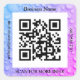 Personalice este pegatina con su código QR en blanco y negro, nombre de negocio, sitio web y código de número con borde de gotas de agua azul y púrpura.