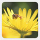 Foto de una abeja recogiendo polen de una margarita amarilla.