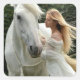 Pegatina Cuadrada Caballo blanco y Chica