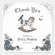 El Pegatina Gótico Baby Shower Rocking Horse Thank You Favor cuenta con un mecedor de madera victoriano hecho a mano con acentos azules, cuerdas negras, telarañas, murciélagos, estrellas y esquinas florales de rosa sobre un simple fondo blanco. Perfecto para sellar bolsos, cajas o sobres para bebés en celebraciones góticas, espeluznantes o de temática victoriana. Todo el texto es editable.