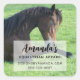 Pegatinas de negocios con una hermosa fotografía con un hermoso caballo marrón tendido en el césped, con aspecto tranquilo y contento.