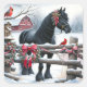 Pegatina Cuadrada Caballo negro festivo y Navidades cardinales