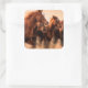 Pegatina Cuadrada Caballos en marcha, mangos borrosos y voladores