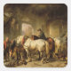 Pegatina Cuadrada Caballos que alimentan en el establo