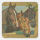 Pegatina Cuadrada Caballos Vintage de Navidad