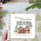 Pegatina Cuadrada Cabaña Vintage Nevada Personalizada Feliz Navidad