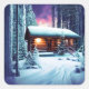 Pegatina Cuadrada Cabina De Leña Rústica Y Extraña En Los Bosques