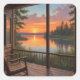 Estos pegatinas cuentan con un relajante escenario vacacional con una cabaña en el lago.