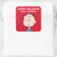 Pegatina Cuadrada Cacahuetes | Retrato de Linus | Felices fiestas