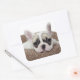 Pegatina Cuadrada Cachorro de Bulldog Francés En Una Cama De Perro