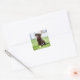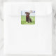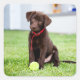 Pegatina Cuadrada Cachorro de chocolate con bola de tenis