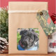 Pegatina Cuadrada Cachorro negro con chaqueta