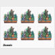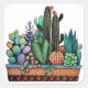 Pegatina Cuadrada Cactus Garden Cute Watercolor En Pot