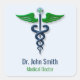 Pegatina Cuadrada Caduceo médico elegante con alas verdes Cruz Azul