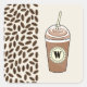 Un pegatina con un ilustracion de té para tomar una taza de café helado con crema batida. Personalice su monograma en la etiqueta de la taza. En el lado izquierdo hay ilustracion de granos de café. Buscar elementos coincidentes en el paquete de Jill.