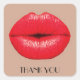 Una imagen de arte pop de brillantes labios de crimson rojos que se tambalean para un beso contra un fondo de color café. Este pegatina de agradecimiento le mostrará su aprecio de una manera cadera y artística. Este diseño está inspirado en el arte pop, el arte moderno, el arte gráfico, la cultura hipster y seguramente será una declaración.