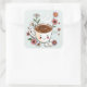 Una ilustración de una taza de café con algunas flores estilo cartoon.