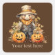 Caída de la estacional espantapájaros añadir texto calabaza Pegatina cuadrado