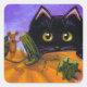 Pegatina Cuadrada Caída Halloween Black Cat Mouse Creationarts
