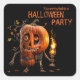 Una linterna de calabaza divertida de Halloween en forma de la letra "P" sosteniendo una lámpara con una llama.