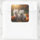 Pegatina Cuadrada Calabaza de Otoño Blanco del Territorio del Oeste