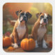 Pegatina Cuadrada Calabaza deslumbrante Boxer Puppy Autumn