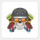 Pegatina Cuadrada Calavera con gafas de sol y patines en línea