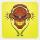 Pegatina Cuadrada Calavera de azúcar DJ - Rojo y Amarillo