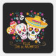 Pegatina Cuadrada Calaveras y flores de azúcar fiesta