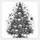 Pegatina Cuadrada Calaveras y huesos del árbol de Navidad negro